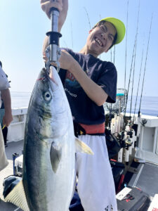 浅川先生と同じく、最近は釣りが趣味です。もともと興味はあったのですが、浅川先生と一緒に行くようになり、より好きになりました!ちなみに私も浅川先生と同じく、大きなハマチを釣りました!