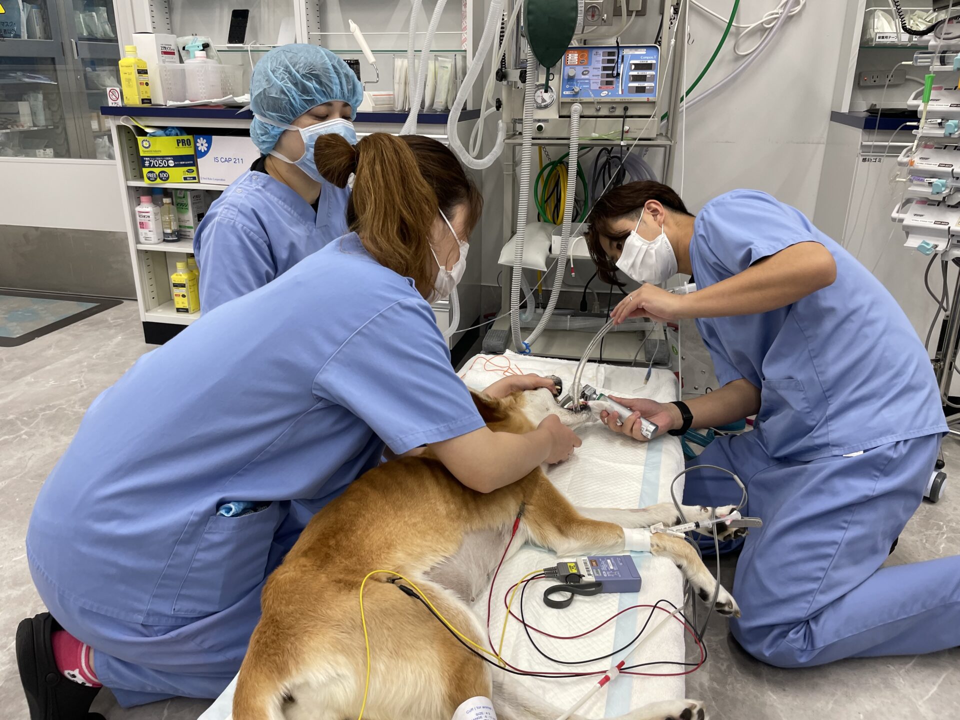 獣医師は私と若山先生の2名、動物看護師は4名の全6名のチームです。いわゆる「麻酔管理」を行う科ですが、麻酔は患者さんの症状や手術内容、年齢など、さまざまな条件によって違うもの。ここでは、まず動物看護師さんがそれぞれの動物や病気の状態に合わせてプロトコルを作成するところから始まり、それを私が確認をしたうえで実際に投与していく、といった一連が業務となります。
