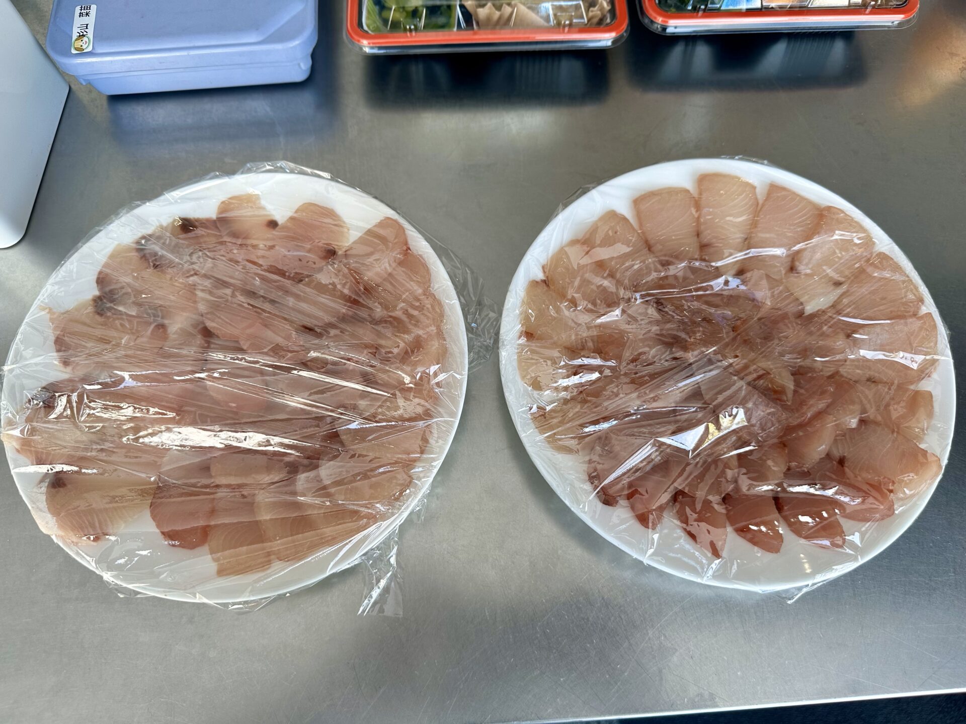 釣った魚を麻酔科/外科チームのみんなで食べることもあります。写真は釣り部のみんなと海に出たときに釣れたハマチです!