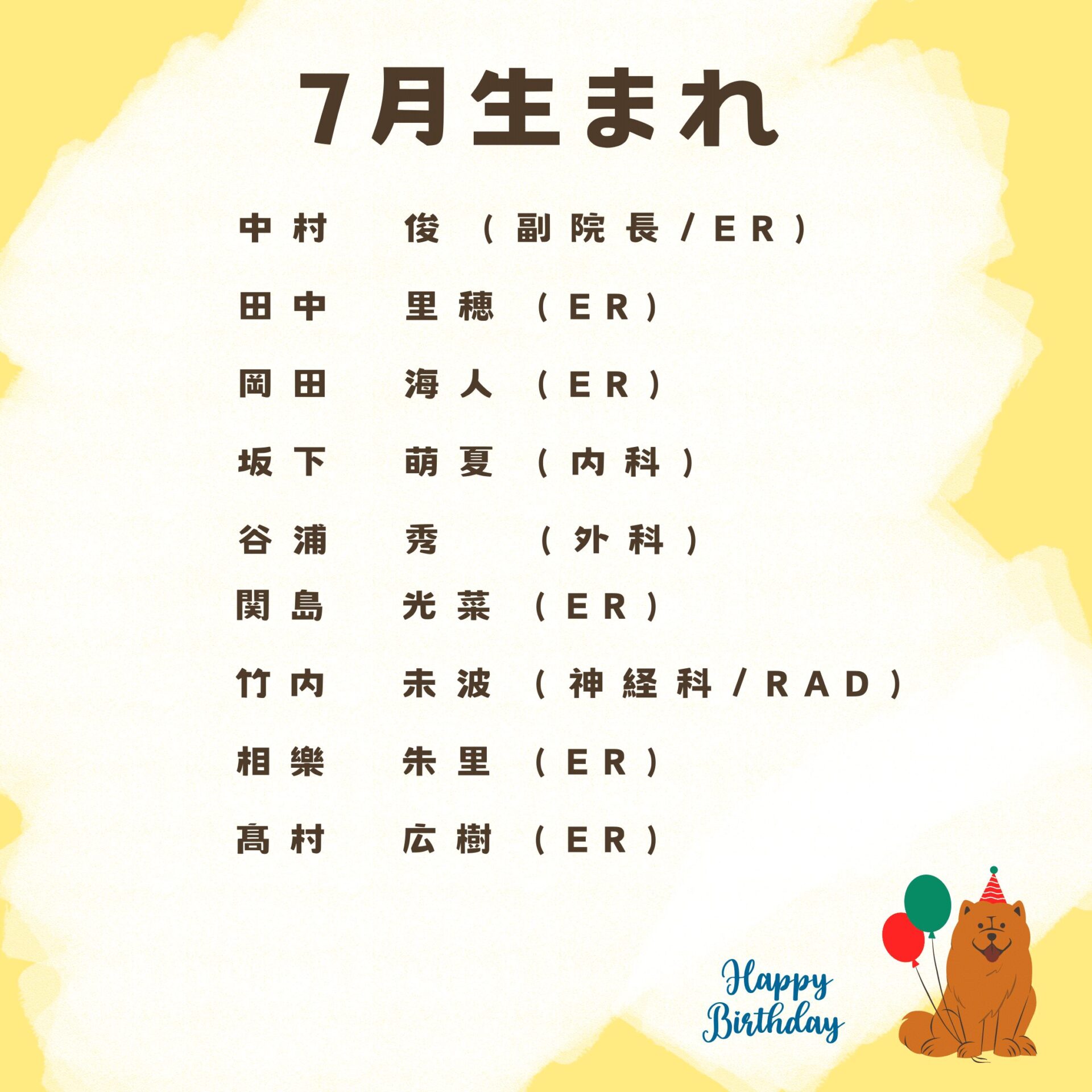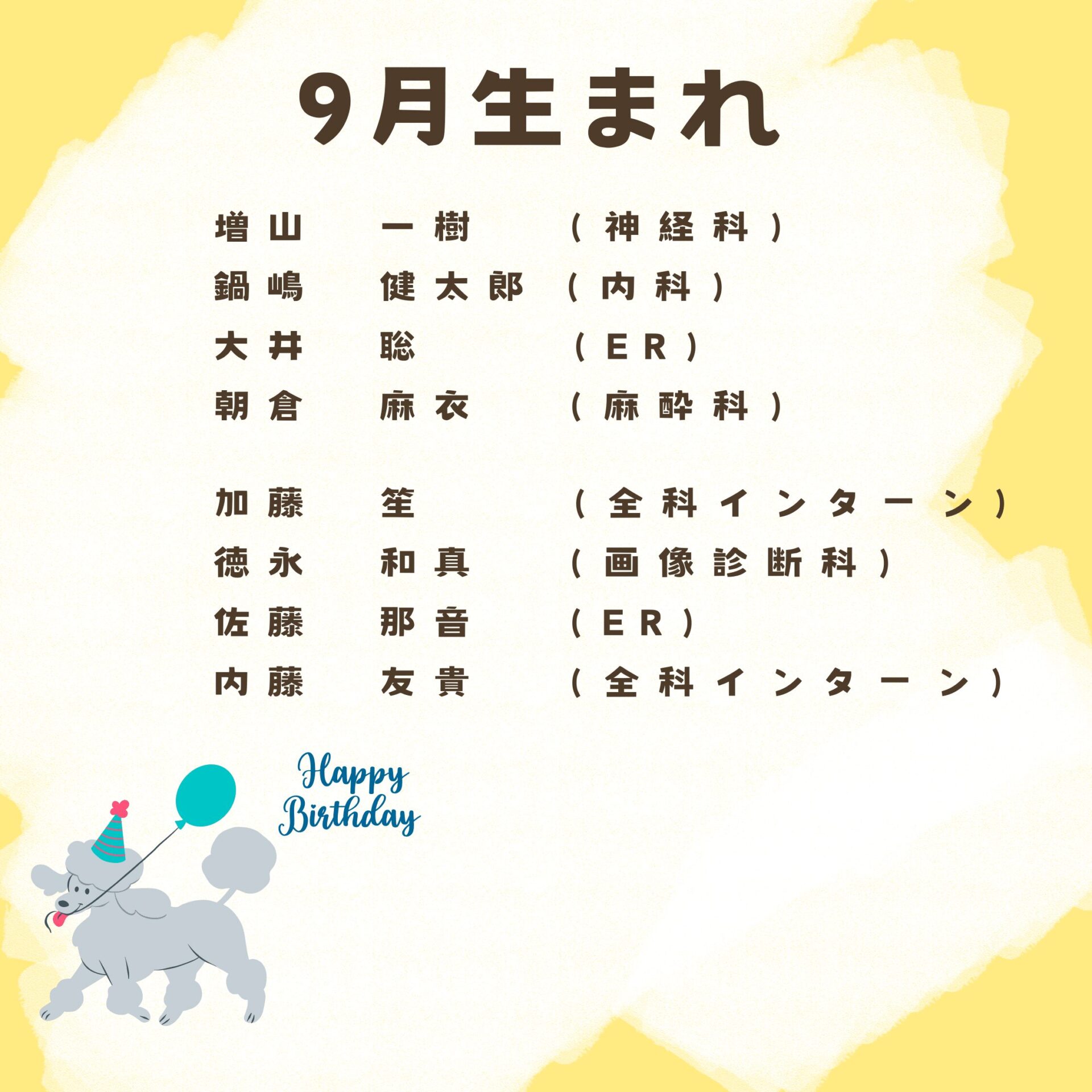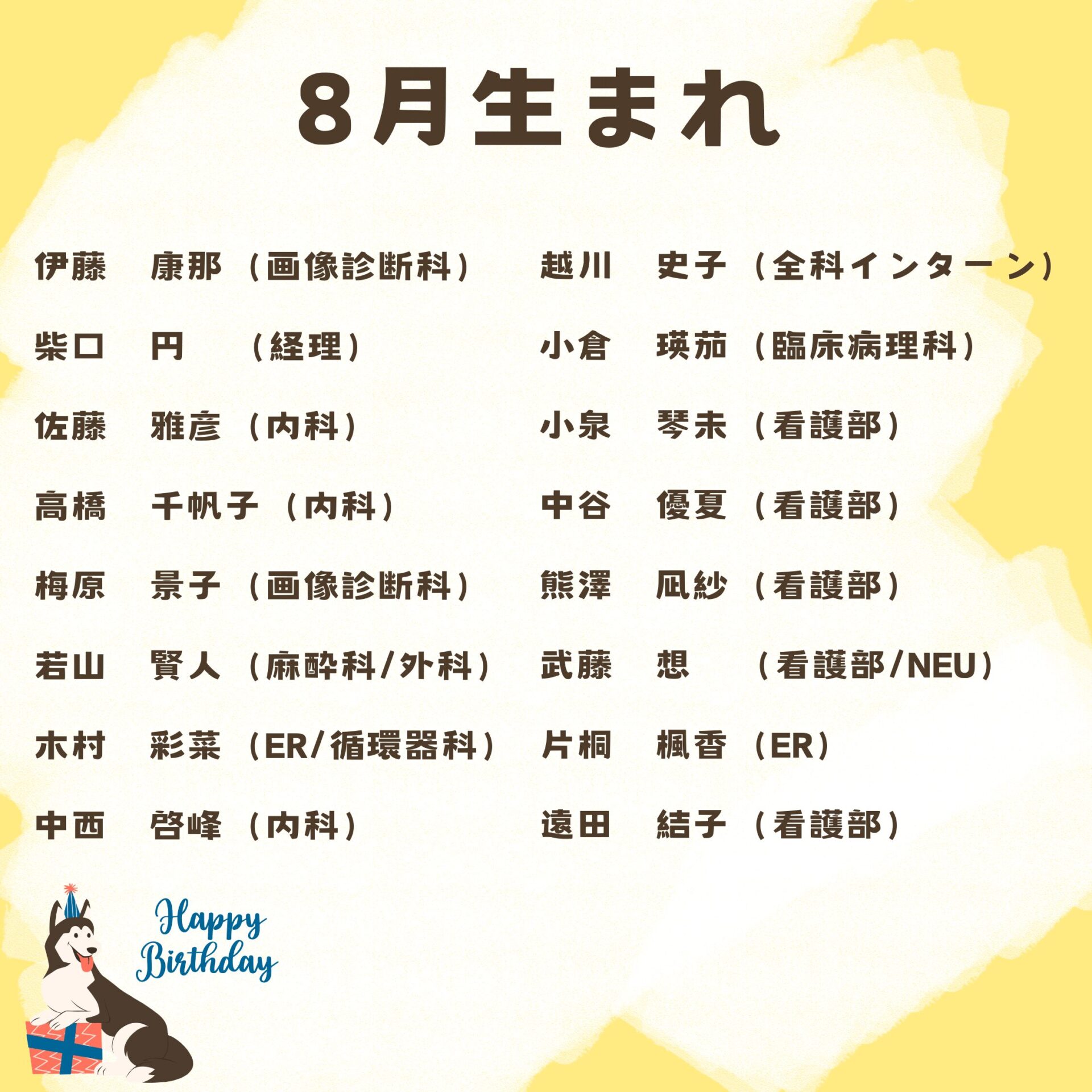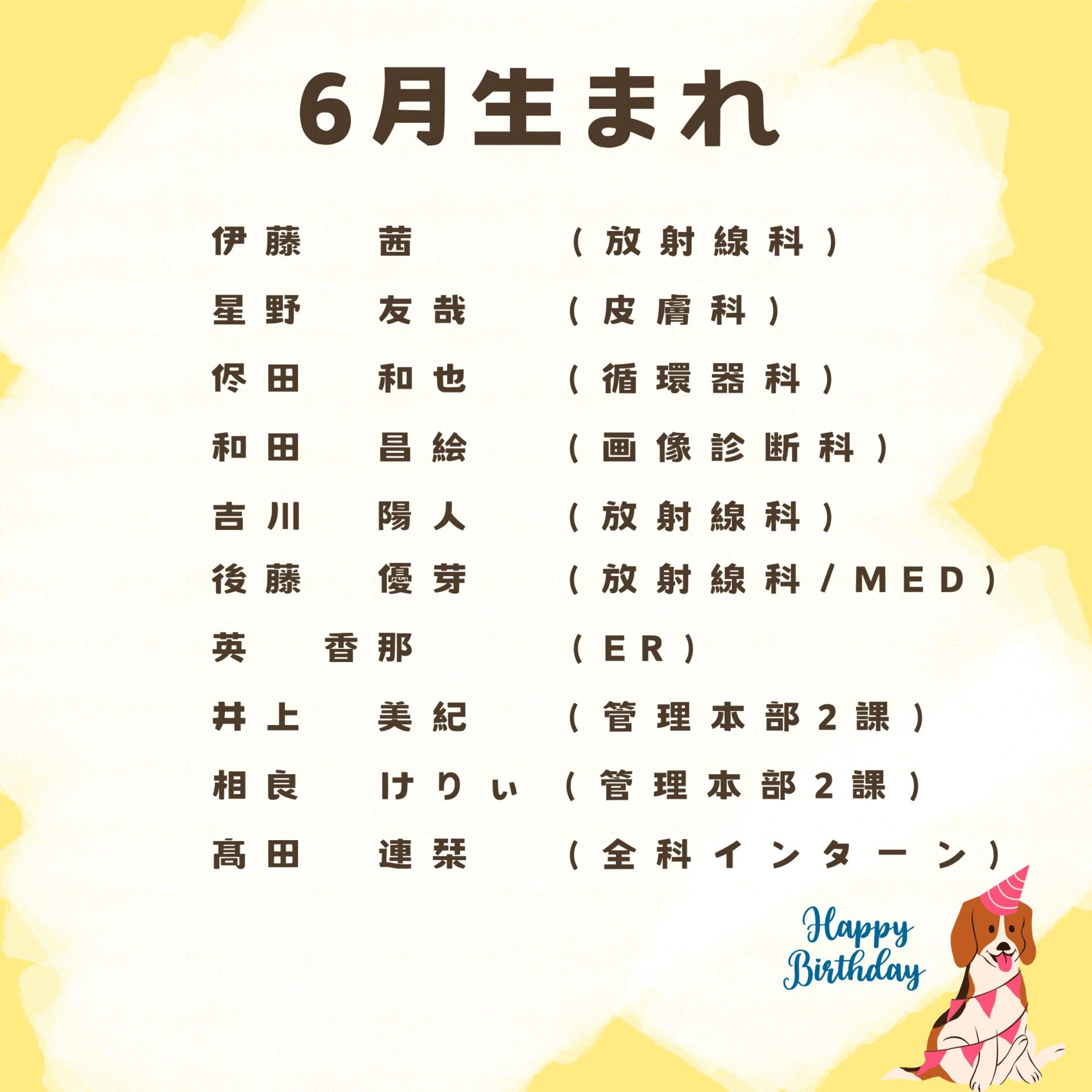 スタッフ誕生日紹介(6~9月) 2025 5/30 管理本部・人事総務部 2025年5月30日 管理本部・人事総務部 【専門医インタビュー記事紹介】福島 建次郎先生(内科) 編集部より(2025年5月) 関連記事 【広報担当よりお知らせ】公式Instagram運用しています!まずは院内フォローのご協力をお願いします 2025年11月29日 スタッフ誕生日紹介(10~1月) 2025年9月29日 使ったことある??とってもお得な福利厚生サービス「Benefit Station」 2025年5月30日 コメント コメントする コメントをキャンセルコメント ※ 名前 ※ メール ※ サイト 次回のコメントで使用するためブラウザーに自分の名前、メールアドレス、サイトを保存する。