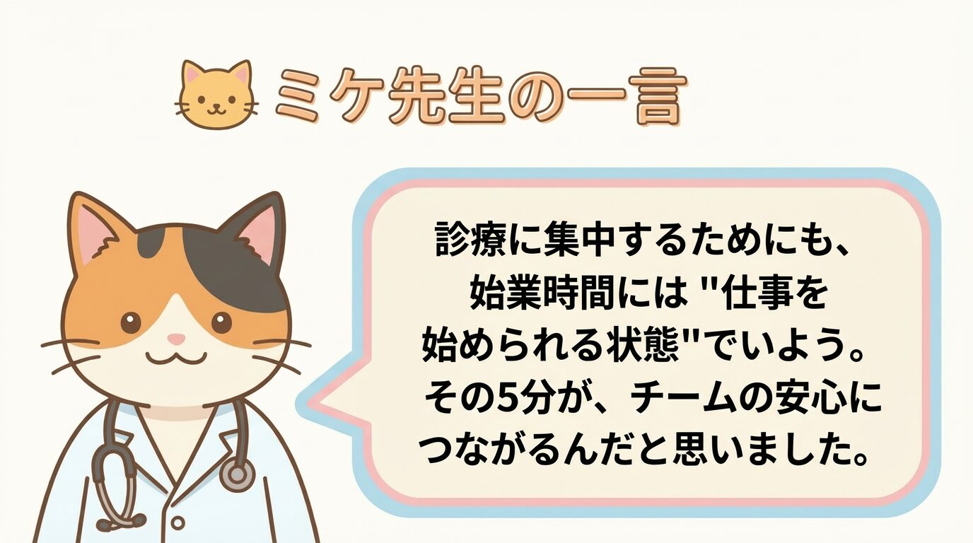 始業時間は「病院に到着する時間」ではなく「準備が終わって働き出す時間」のことですよ。