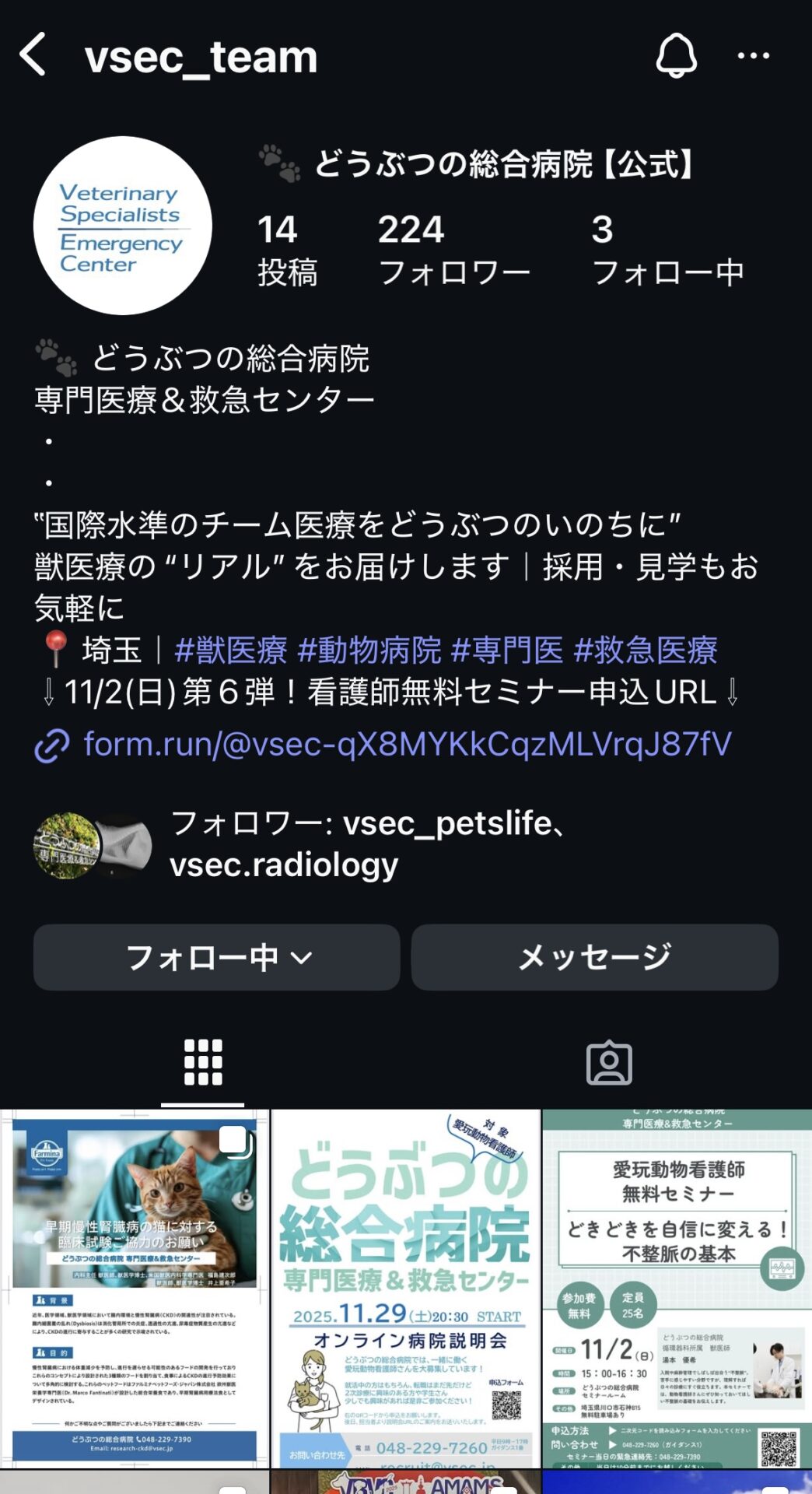 こちらは獣医師・動物看護師など業界の方に向けたリクルート目的のアカウントです。