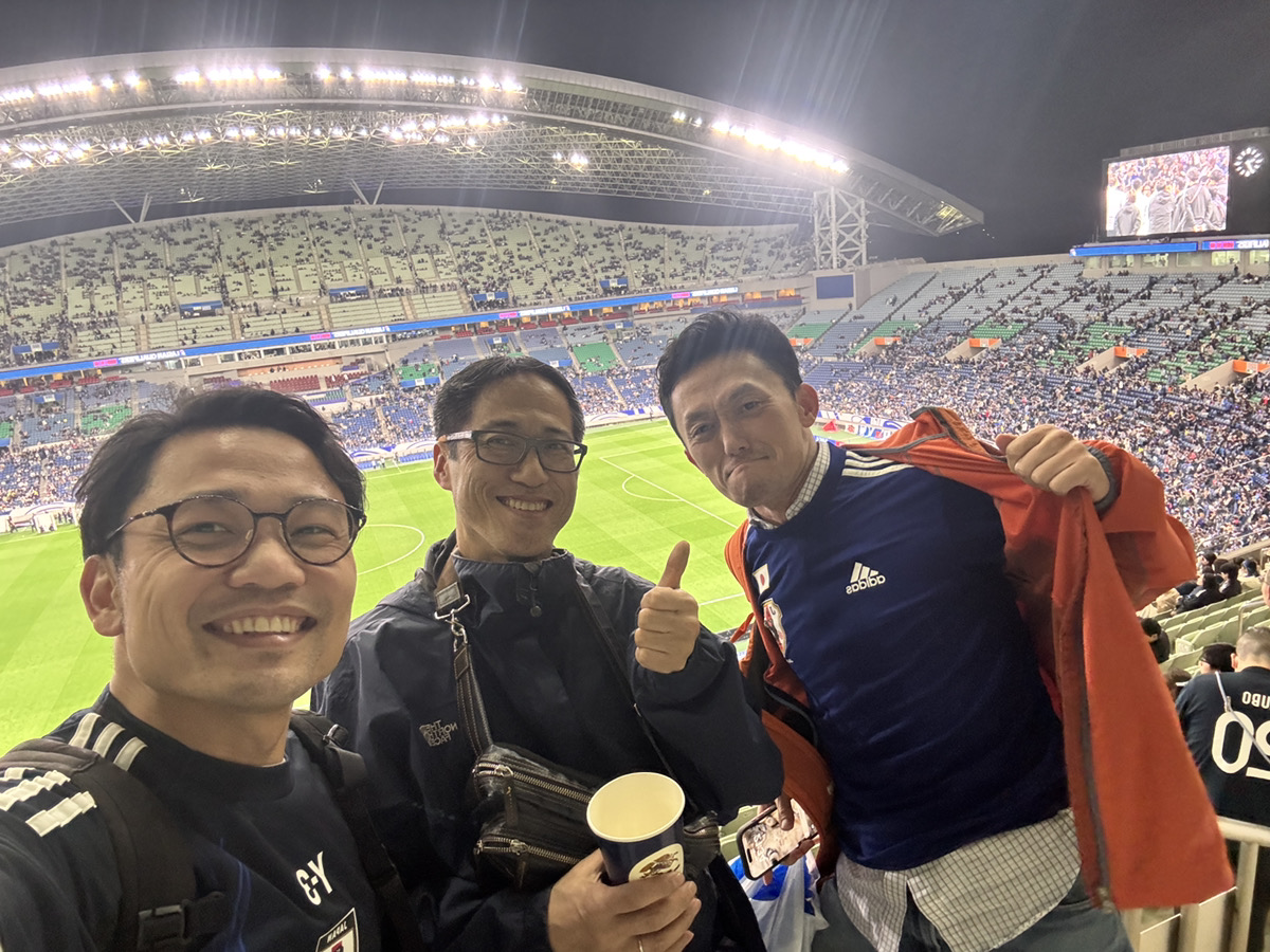 水族館や動物園、博物館が好きで、一人で行くこともしばしば。あとはサッカーも好きで、浦和レッズの年間シートを持っています。(取締役の青山先生(あおやま動物病院)の隣の席です!)写真は、同じくサッカーが好きな塩満先生・吉川先生と一緒に、日本代表戦を観戦したときのものです。ご興味あれば一緒にいきましょう。いつでもお待ちしております。