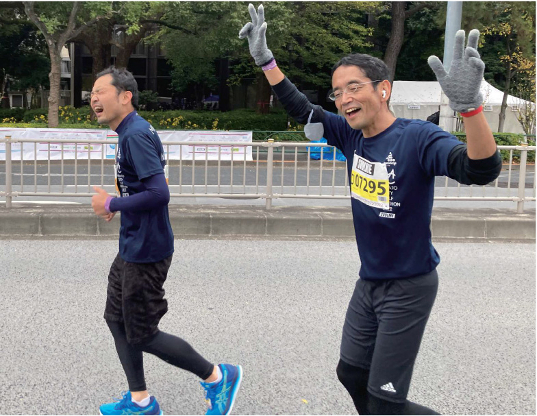 8:30に港区芝公園を出発し、田町・新橋・虎ノ門などの都内を駆け抜けてきました。 ランニングは汗を流して、爽快なスポーツ!という概念もなく、14〜15kmを超えたあとはからは悲鳴を上げる膝。残り5kmは膝が痛すぎて、前に足を出すだけで精一杯でしたが、最初から一緒に走っている栗原さん、中塚さんと励まし合いながら無事3人でゴールできました。