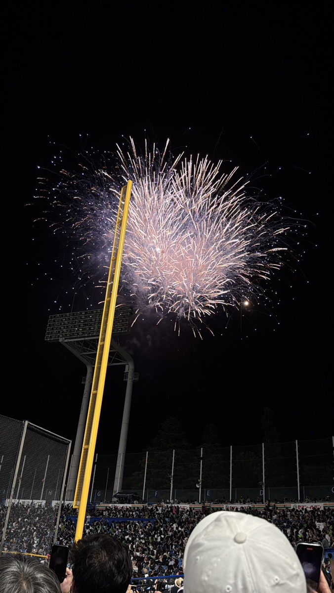 季節のイベントが好きなので、この夏は海を楽しんだり、お祭りへ行ったりしました。先日は、高校の同級生が出ている社会人野球の試合を神宮球場で観戦。観戦中にちょうど花火も上がり、とてもきれいでした!