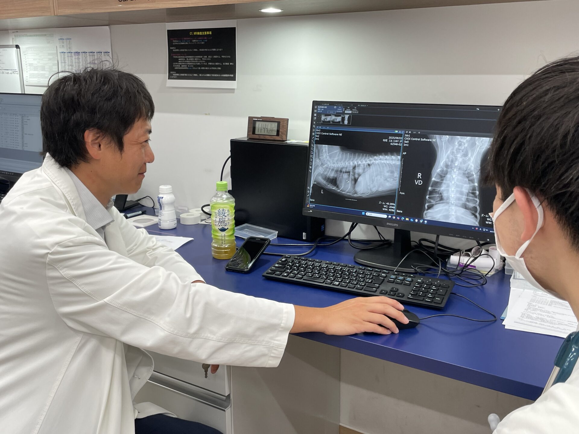 診察や手術、術後の入院管理やその後の通院治療に加え、報告書の作成や他科のコンサル、休日・夜間の対応オンコール対応など、業務は多岐にわたります。また、院内では指導医のポジションでもある一方で、私自身が日本小動物外科のレジデントでもあるので、学会発表や論文執筆などのプログラムに目下取り組んでいるところです。